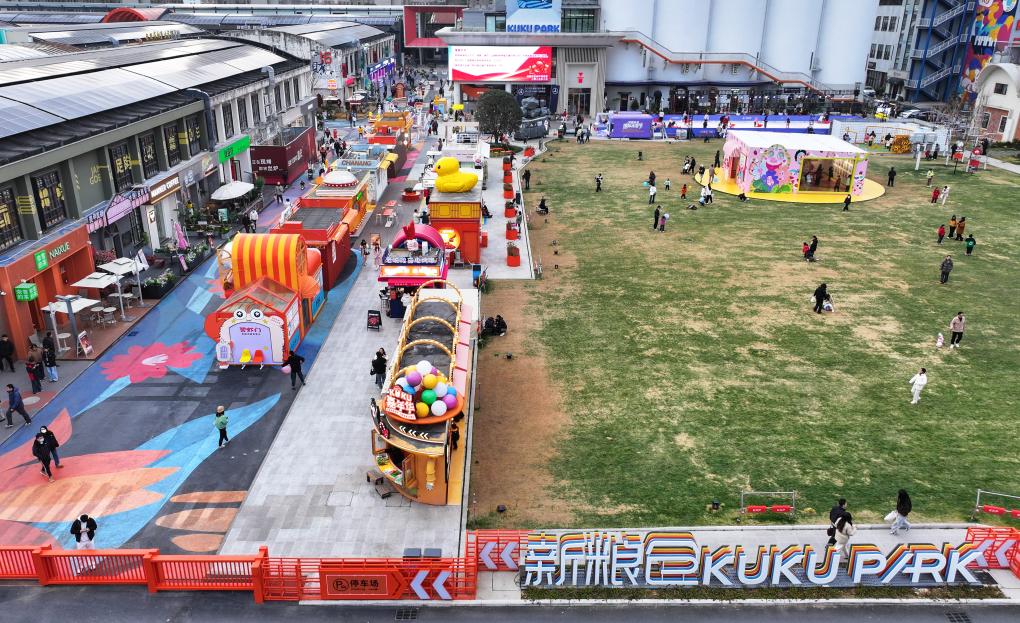 在安徽省合肥市蜀山區黃山路與懷寧路交叉口南,一組筒倉建築群引人注目,它的前身是1993年建成的安徽省機械化糧庫。2023年,以城市更新為契機,改造啟動,筒倉、鐵軌等工業印記被保留,現代設計理念巧妙融入。2024年5月,新糧倉商業合集正式面向公眾開放,匯聚創意零售、潮流娛樂、品質餐飲、生活美學、文創體育五大業態,萬噸筒倉搖身變為藝術中心,畫廊、外文書店、設計品牌紛紛入駐。截至2025年底,新糧倉商業合集已累計接待游客超1500萬人次,營收突破7億元。
