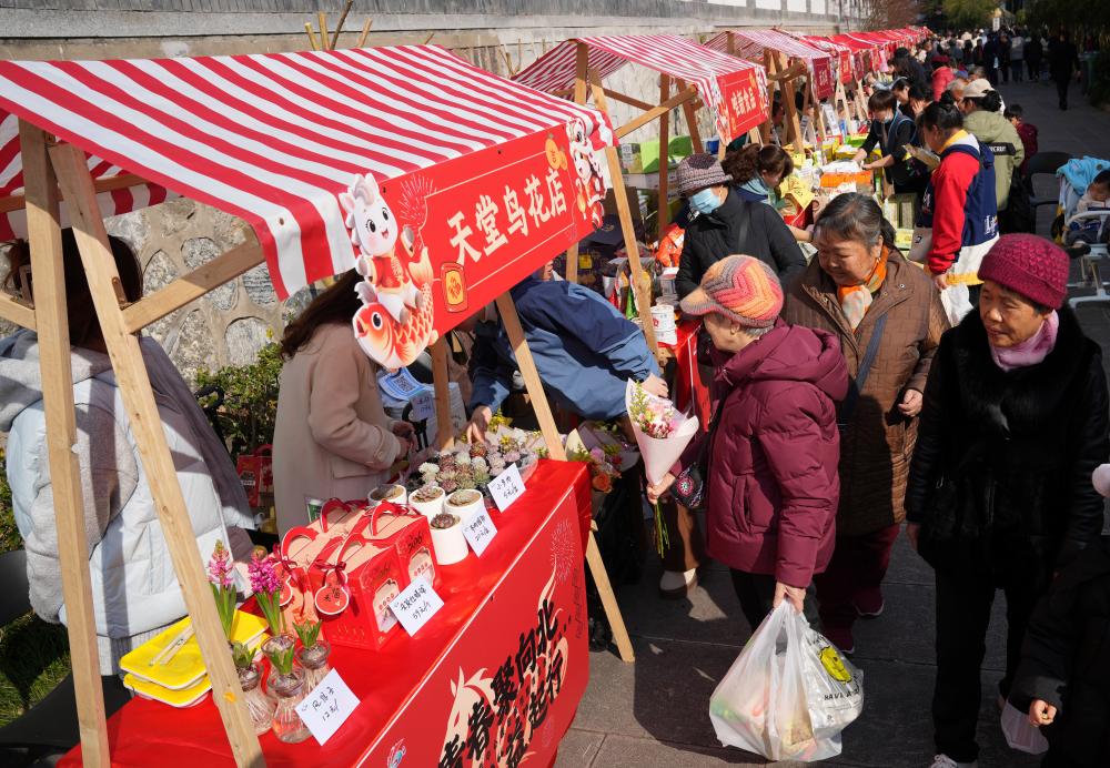 1月15日,杭州市西湖區北山街道黨群服務中心舉辦暖冬集市暨青年志願者嘉年華活動,社區居民在冬日暖陽中體驗非遺項目、採購年貨,感受暖心志願服務。