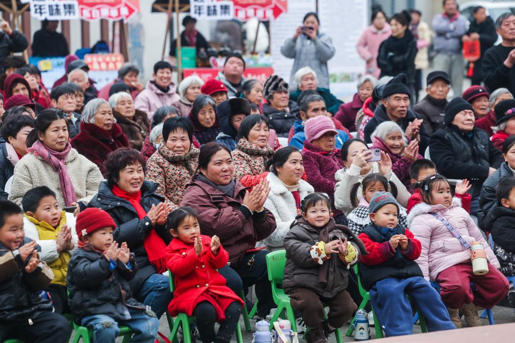 1月23日,村民們在鄉村年味大集上觀看演出。