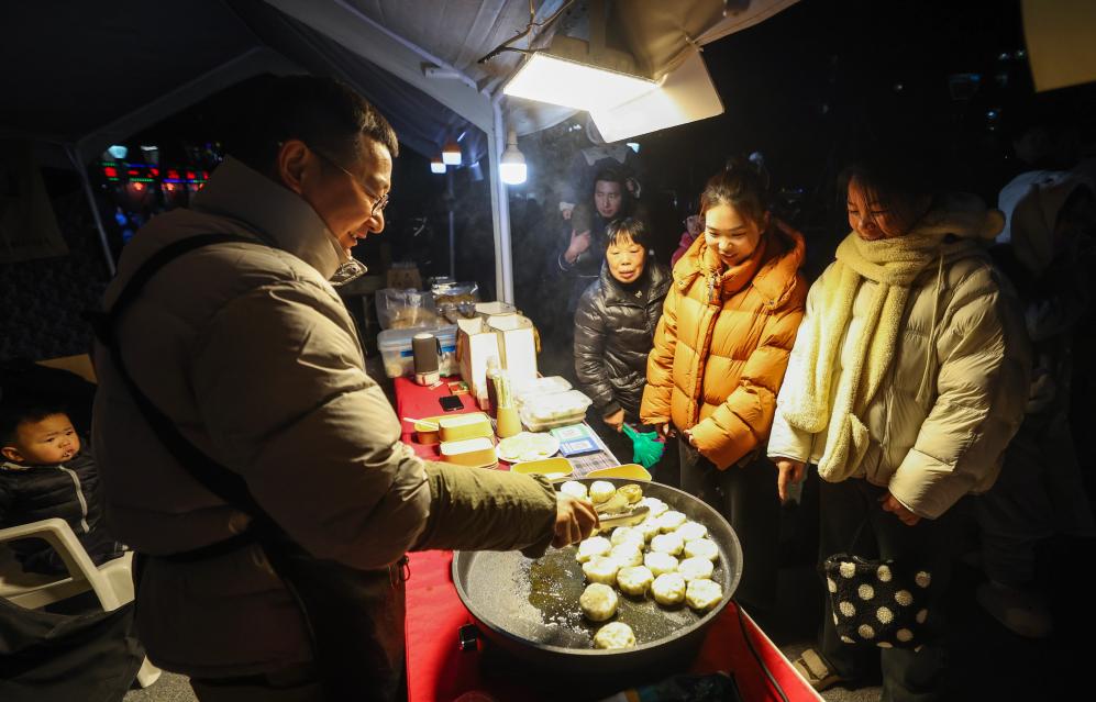 1月23日,居民在陶朱街道友誼社區王家湖公園的共富市集上選購美食。