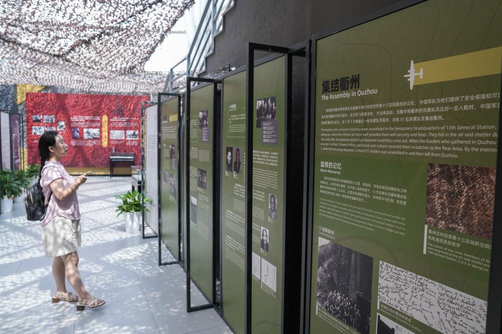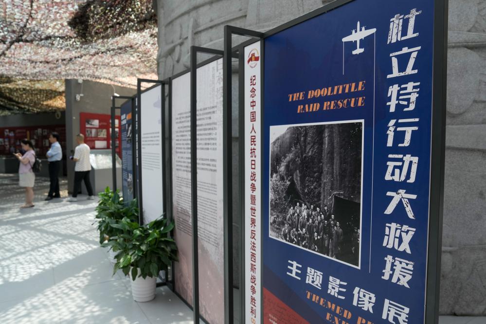 7月7日,觀眾在南京抗日航空烈士紀念館參觀《“杜立特行動大救援”主題影像展》。