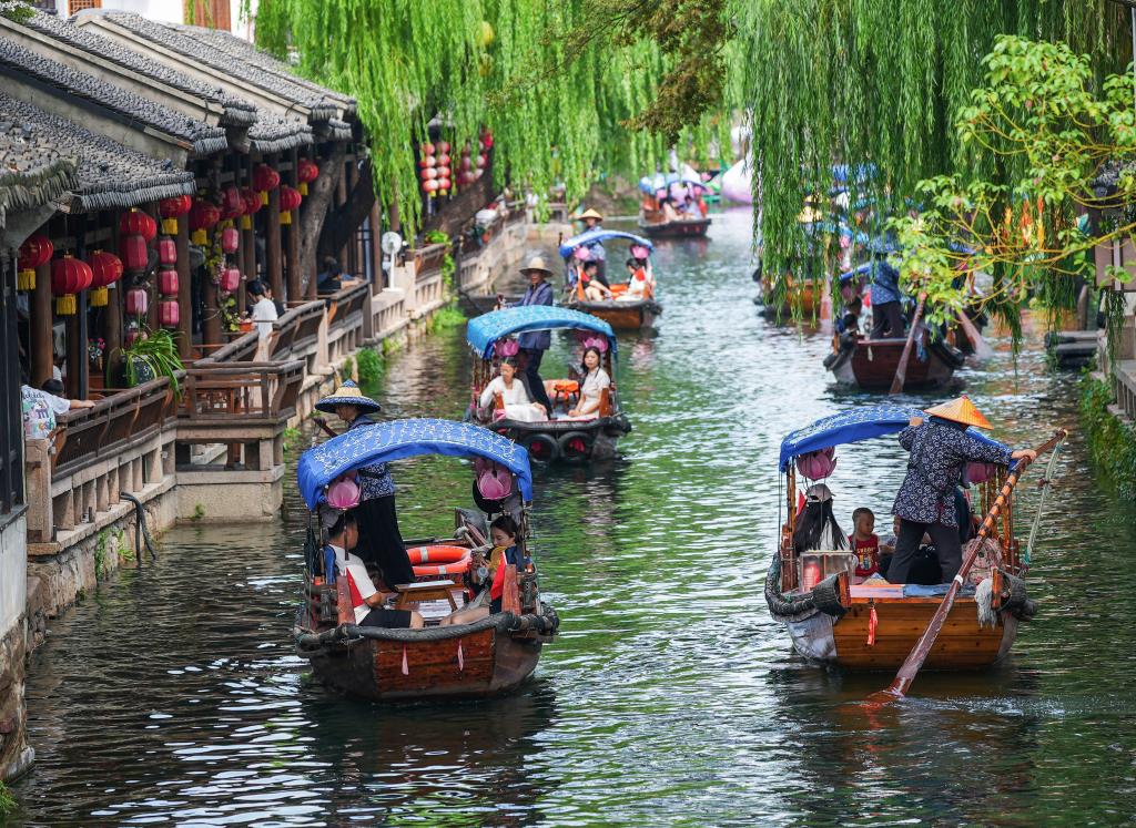 10月5日,游客在江蘇省昆山市周莊古鎮游覽。