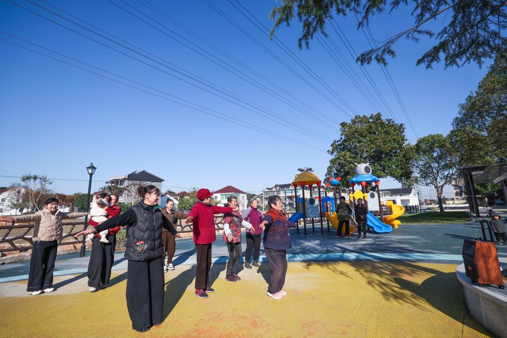 11月19日,呂山鄉呂山村的村民在新建的村民公園裏跳健身操。