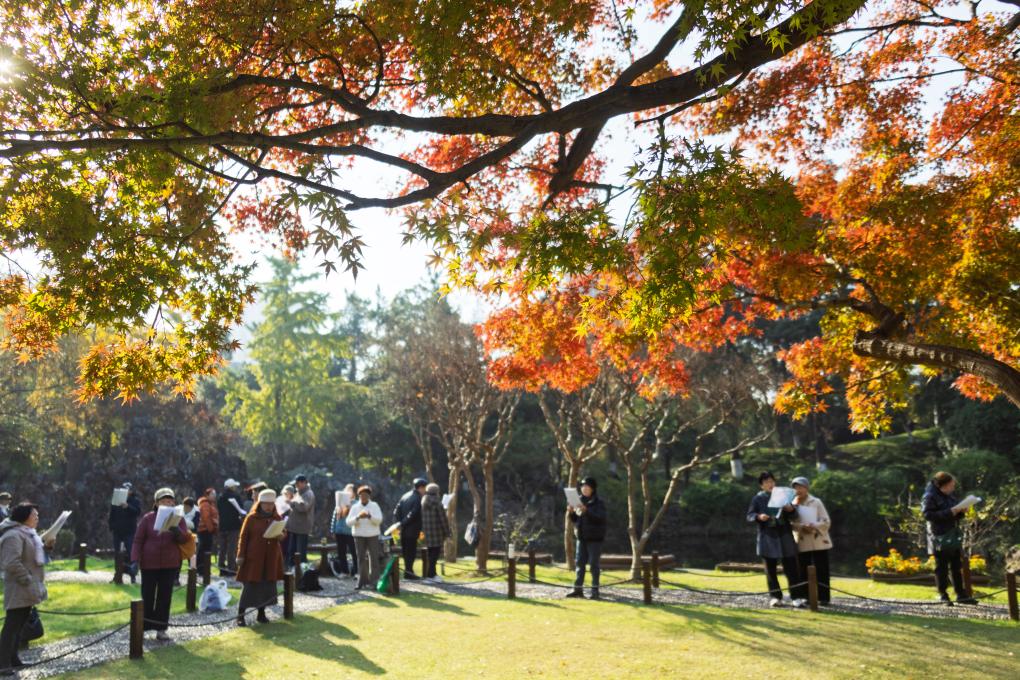 11月21日,市民在南京莫愁湖公園唱歌休閒。