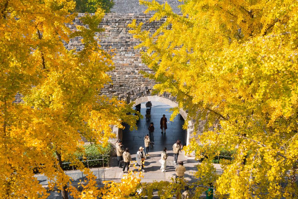 11月21日,人們在南京漢中門廣場賞景游玩(無人機照片)。