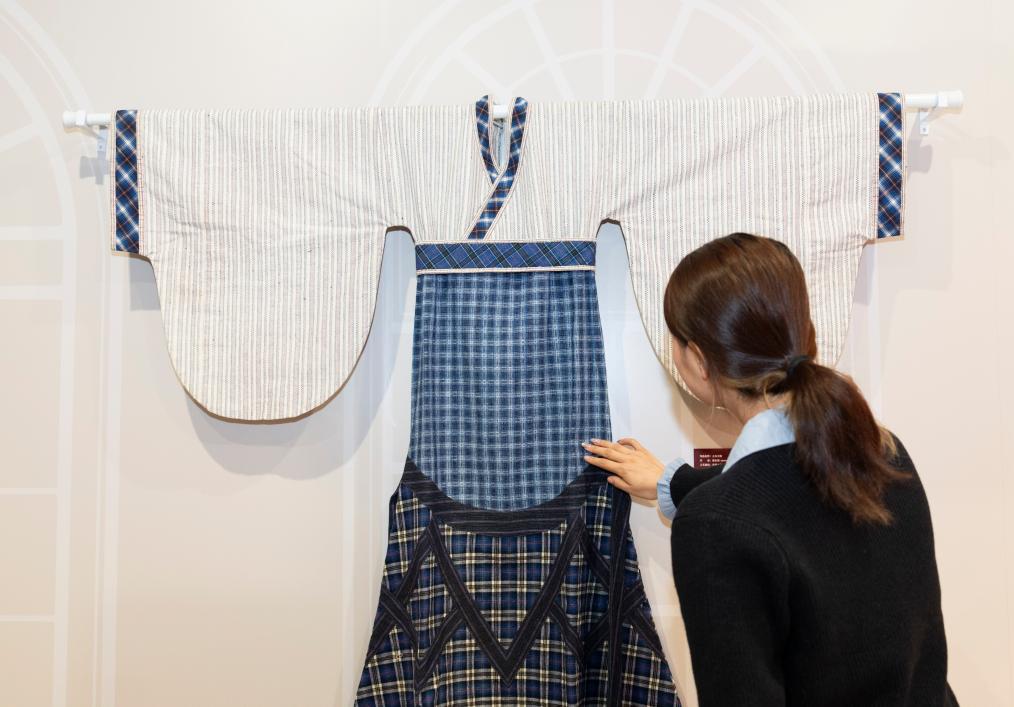 這是11月21日在北京故宮文創融合館舉行的“海派匠心·藝韻共融”上海市殘疾人文化藝術作品展上拍攝的“土布漢服”作品。
