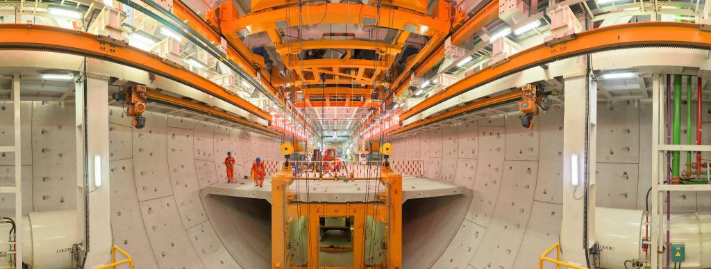 12月7日,施工人員在海太長江隧道工程施工現場拼裝管片。