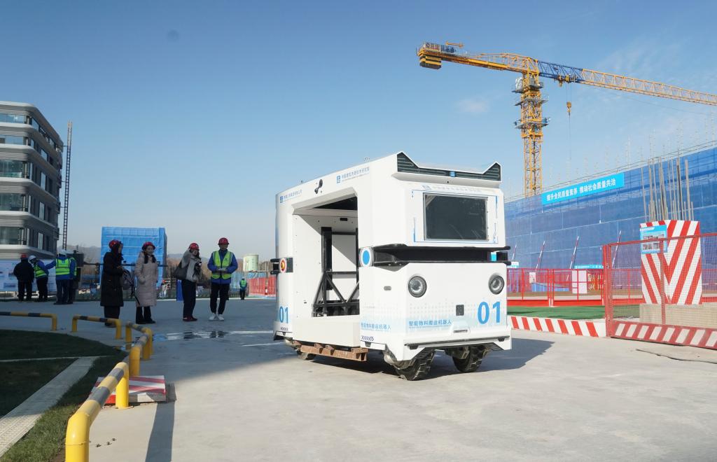 這是1月12日在觀摩會現場拍攝的“智能物料搬運機器人”。