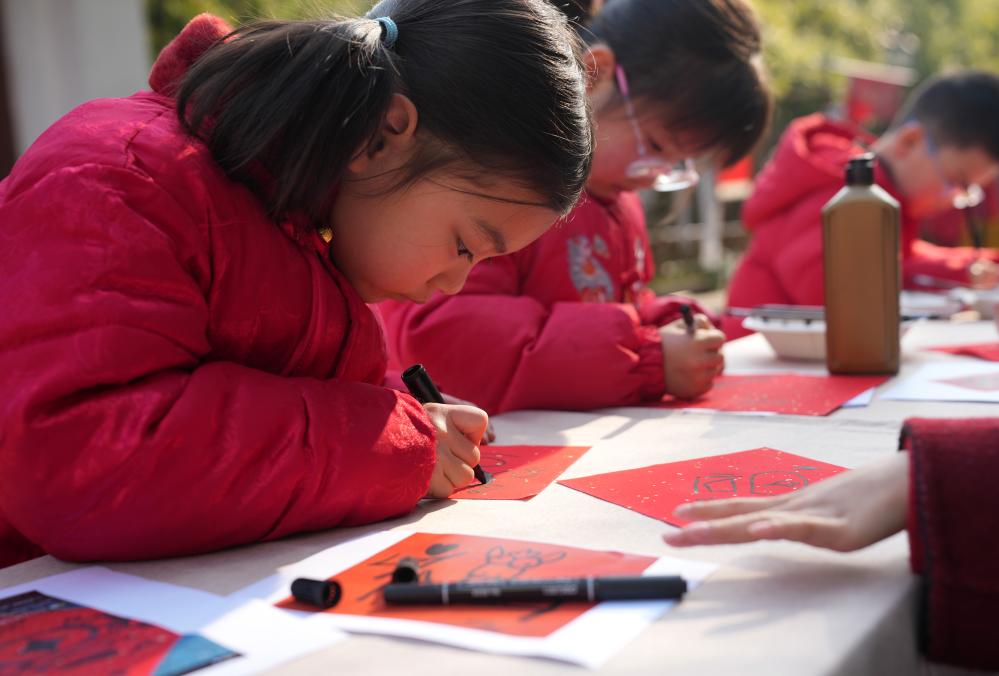 1月23日,書法愛好者在活動現場為社區居民寫福字和春聯。
