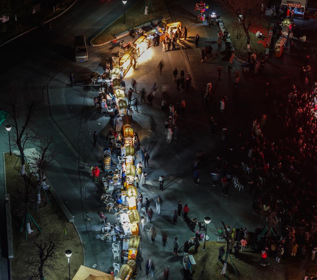 1月23日拍攝的陶朱街道友誼社區王家湖公園的共富市集(無人機照片)。