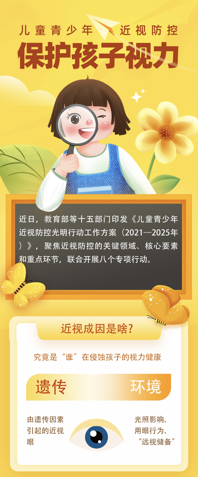 近日,教育部等十五部門印發《兒童青少年近視防控光明行動工作方案(2021—2025年)》,聚焦近視防控的關鍵領域、核心要素和重點環節,聯合開展八個專項行動。