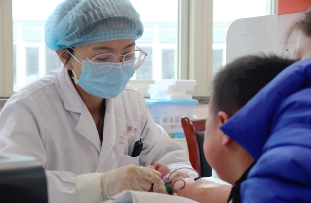 成都市金牛區婦幼保健院,醫護人員正給孩子採血。但科諦 攝