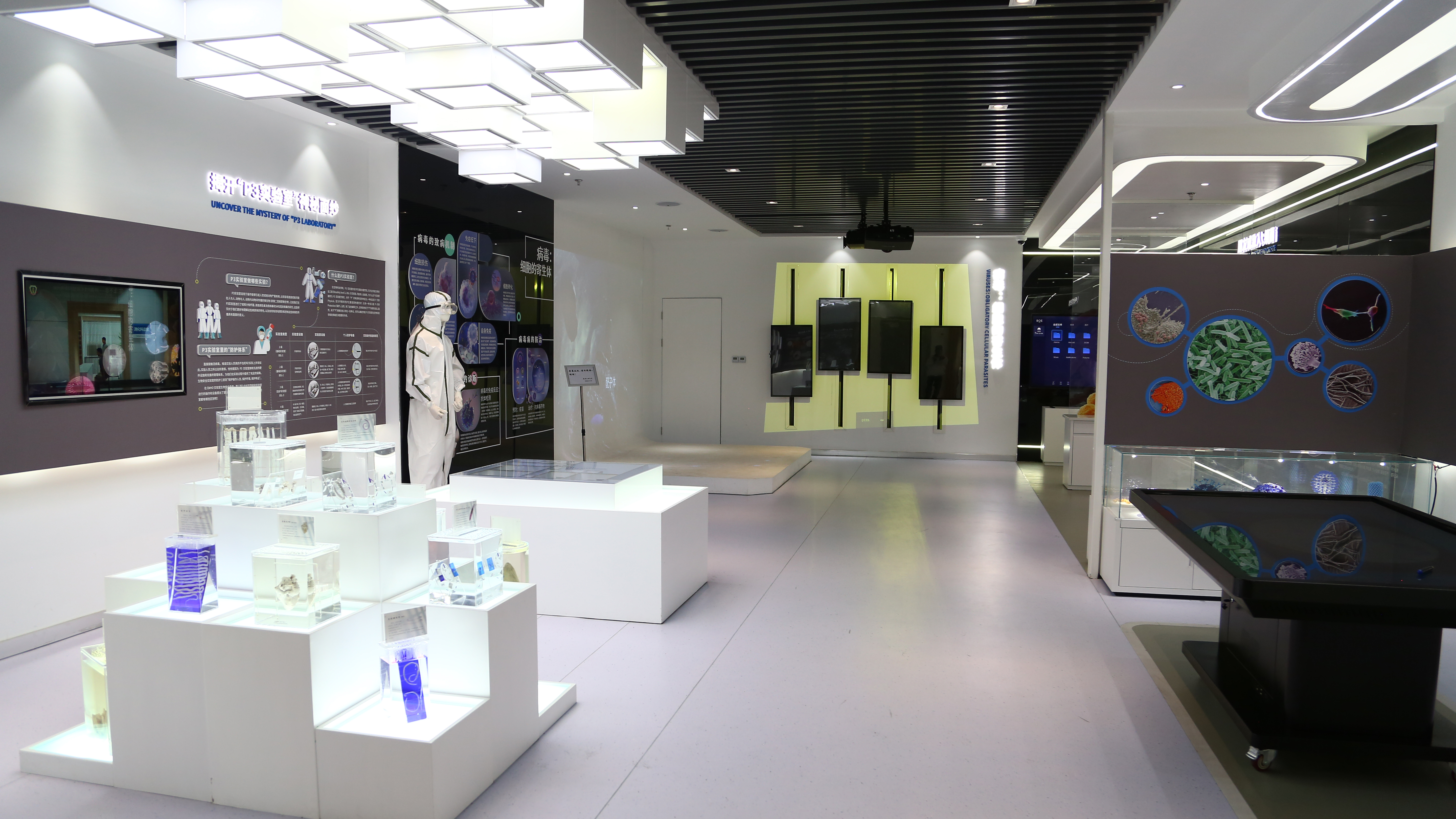 復旦大學病原生物科學館坐落於復旦大學上海醫學院復星樓,展陳面積約350平方米,2023年1月建成,2023年5月30日獲批成為全國科學家精神教育基地。整個展區包括三個部分:樓梯間的海報及裝飾畫,通過向參觀者展示常見的細菌、病毒、真菌和寄生蟲的形態,逐步拉開展館的神秘面紗;通道長廊的人文線,整個U型的長廊也是整個展館的序廳部分,設有學科巨匠與科普小故事、林飛卿教授紀念展區、病原生物學科發展史、病原生物系歷史沿革等;主展區的科普線是展廳的主要參觀線,分為五個區域:人體感染性疾病虛擬倣真教學機,細菌和真菌展示區,病毒展示區,寄生蟲分類展示區和生物安全實驗室展示區。展館整體設計圍繞病原生物科學,利用數字多媒體與現代展陳,集科普教育、追溯淵源,明道修己和弘揚科學家精神於一體,力求達到 啟發智慧、激勵探索、強化學風、服務社會的目的。