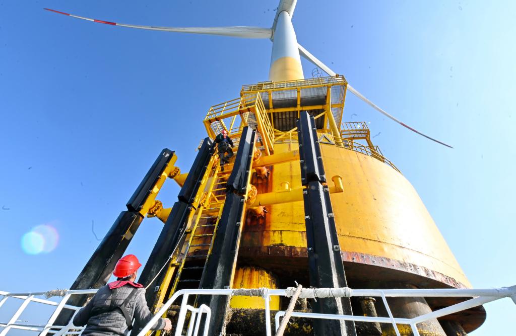 “作為海上風電運維人員,爬梯是一項基本功,遇到低潮時要爬20多米才能到達基座。”福建中閩海上風電有限公司“90後”運維人員黃志明説:“輪轂中心高度距離塔基下面是100余米,我也有點恐高,到了機艙上面的時候,感覺這個龐然大物它真的很高。”