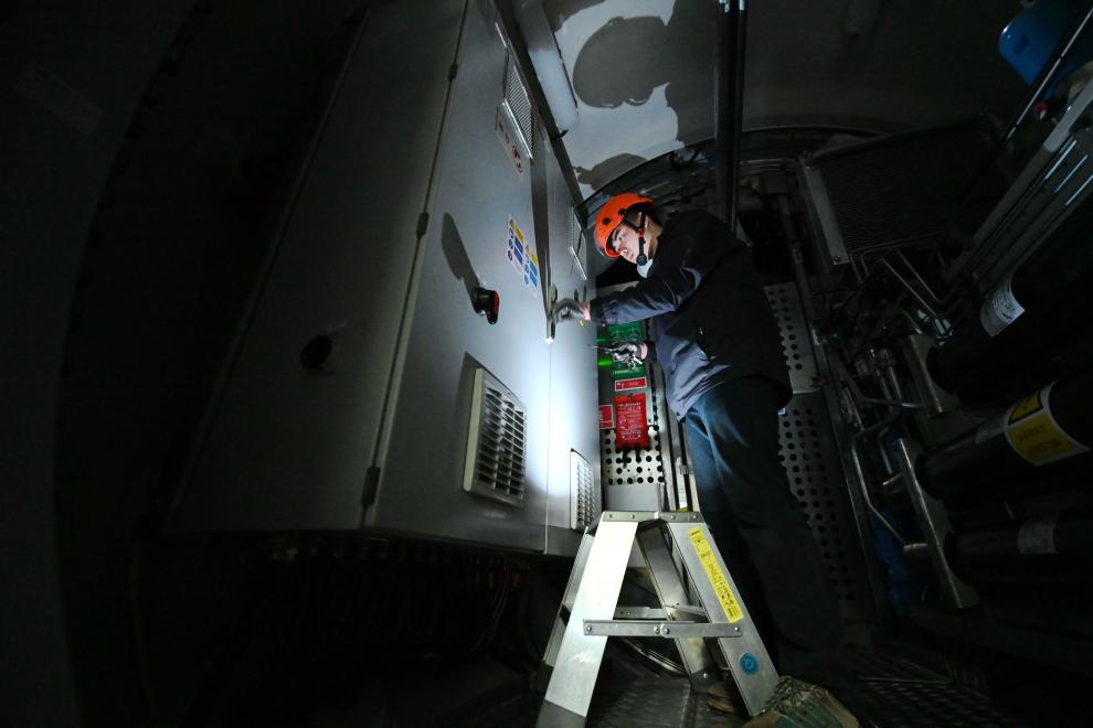 1月19日,鄭桂雄在風機機艙內查找故障原因。