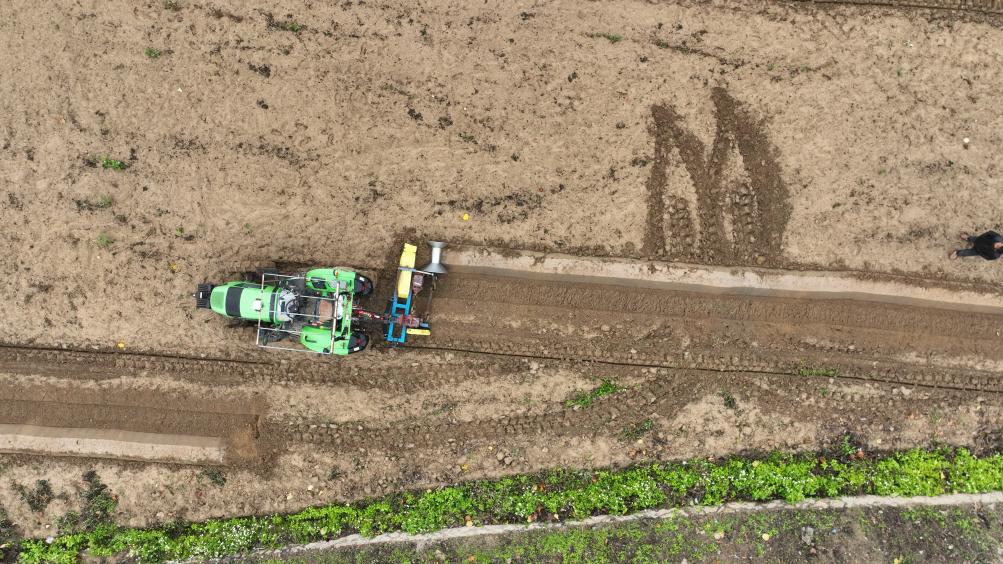 圖為3月31日拍攝的“無人築埂機”(無人機照片)。新華社記者 周義 攝