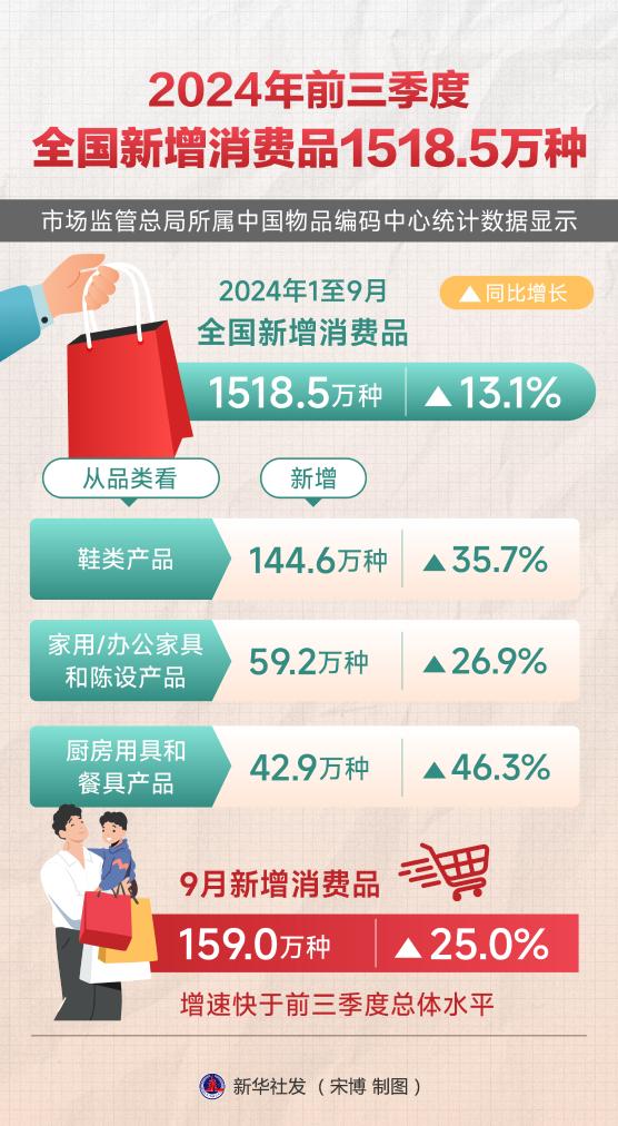 2024年前三季度全國新增消費品1518.5萬種-新華網