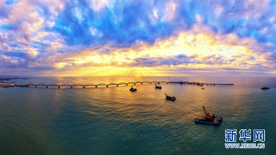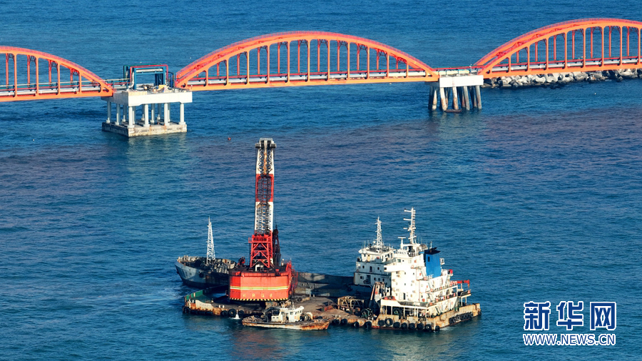 施工船舶在海上作業。新華網發(郝留建 攝)