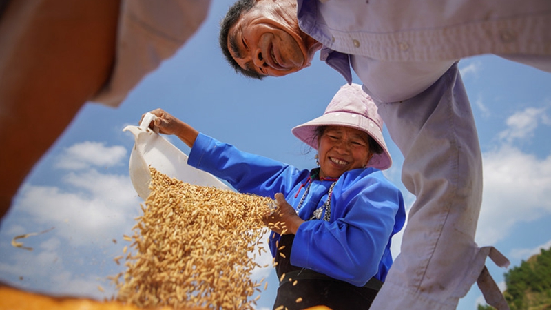 SHIJIAZHUANG, 25. September 2022 (Xinhuanet) -- Das am 24. September 2022 aufgenommene Luftbild zeigt Reisfelder in einer Demonstrationszone für Reisanbau in der Gemeinde Dawang des Kreises Anxin in der Xiong'an New Area der nordchinesischen Provinz Hebei. Der Kreis Anxin in der Xiong'an New Area hat eine lange Geschichte des Reisanbaus. Der Kreis Anxin liegt in der Nähe des Sees Baiyangdian, des größten Feuchtgebietsökosystems in Nordchina, und hat einen außergewöhnlichen Bewässerungsvorteil beim Reisanbau. In den letzten Jahren hat der Kreis Anxin Reis-Fisch- und Reis-Krabben-Kokulturmethoden eingeführt, um eine moderne Demonstrationszone für ökologische Landwirtschaft zu errichten. (Quelle: Xinhua/Yang Shiyao)