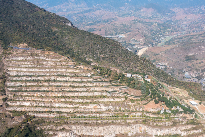 CHENGDU, 8. Dezember 2022 (Xinhua) -- Die Luftaufnahme zeigt ein Bergbaugebiet nach der ökologischen Sanierung in einem nationalen Naturschutzgebiet für Palmfarne in Panzhihua in der Provinz Sichuan im Südwesten Chinas, 28. November 2022. Die Stadt Panzhihua verfügt über Chinas einziges nationales Naturschutzgebiet für Palmfarne, das aus mehr als 385.000 Exemplaren der Pflanze besteht. Lokale Behörden und Panzhihua Iron and Steel haben ihre Anstrengungen zum Schutz von Palmfarnen im Zuge der grünen Entwicklung und Bestrebungen der Stadt zur Wiederherstellung von Ökosystemen verstärkt. Bergbauaktivitäten wurden in dem Naturschutzgebiet unterbunden. Gebirge, die aufgrund des Bergbaus kahl waren, leuchten inzwischen wieder grün. (Xinhua/Xu Bingjie)