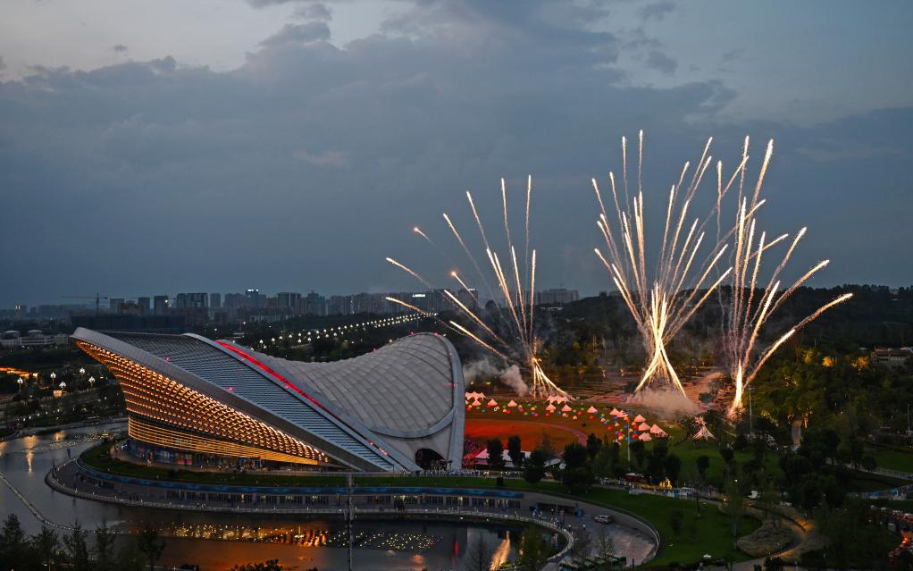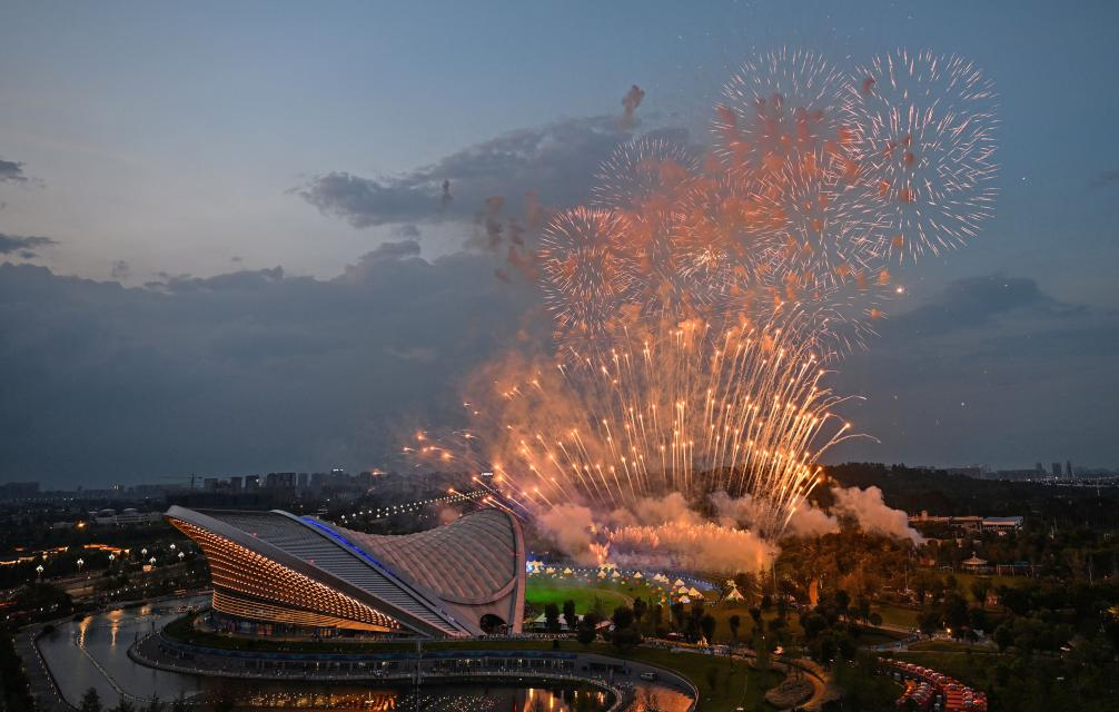 CHENGDU, 8. August 2023 (Xinhuanet) -- Feuerwerk ist bei der Abschlusszeremonie der 31. FISU Summer World University Games in Chengdu in der südwestchinesischen Provinz Sichuan zu sehen, 8. August 2023. (Quelle: Xinhua/Huang Wei)