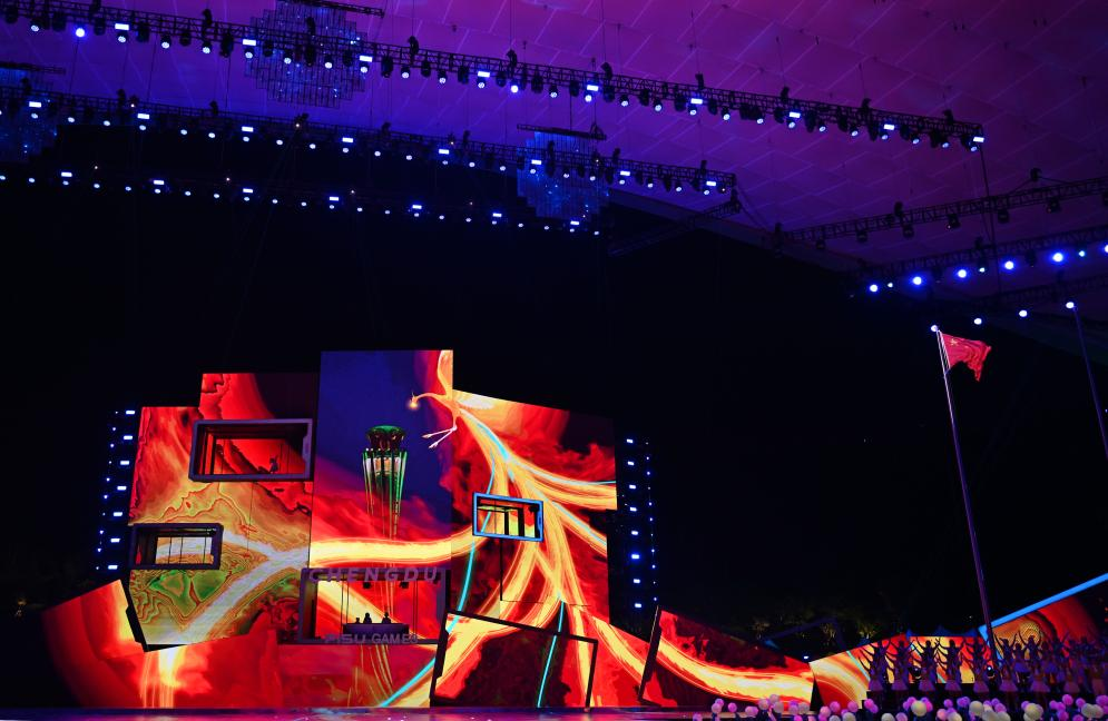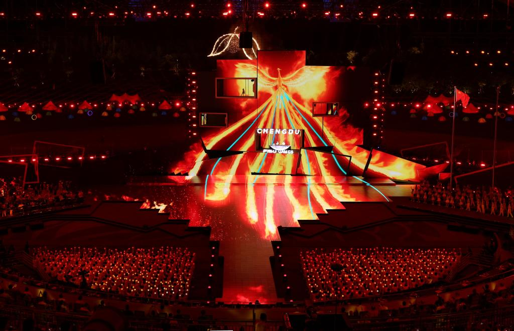 CHENGDU, 8. August 2023 (Xinhuanet) -- Die Zeremonie des Flammenauslöschens findet während der Abschlusszeremonie der 31. FISU Summer World University Games in Chengdu in der südwestchinesischen Provinz Sichuan statt, 8. August 2023. (Quelle: Xinhua/Jiang Hongjing)