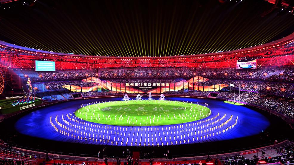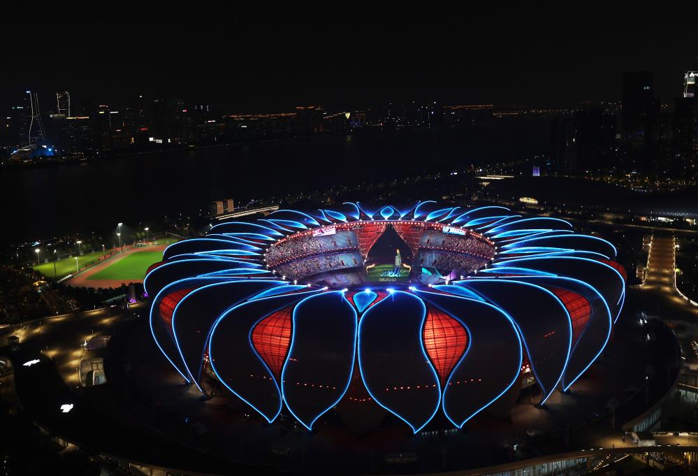 HANGZHOU, 8. Oktober 2023 (Xinhuanet) -- Das Foto vom 8. Oktober 2023 zeigt einen Blick auf das Hangzhou Olympic Sports Center Stadium vor der Abschlusszeremonie der 19. Asienspiele in Hangzhou in der ostchinesischen Provinz Zhejiang. (Quelle: Xinhua/Cheng Tingting)