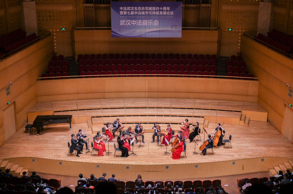 WUHAN, 19. März 2024 (Xinhuanet) -- Französische Künstler treten während eines chinesisch-französischen Konzerts in der Konzerthalle Qintai in Wuhan in der zentralchinesischen Provinz Hubei auf, 19. März 2024. (Quelle: Xinhua/Du Zixuan)