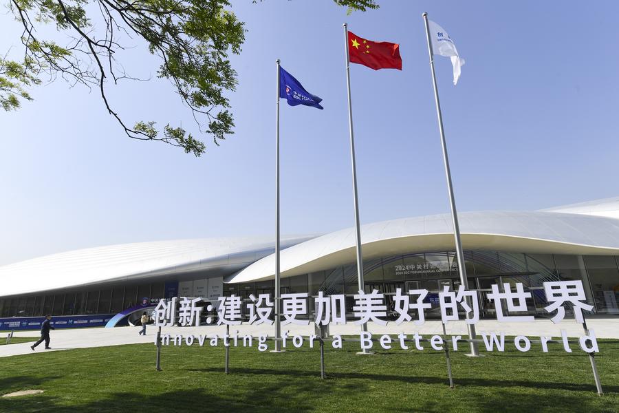 Das Foto zeigt eine Außenansicht des Zhongguancun International Innovation Center, des neuen Veranstaltungsorts des Zhongguancun Forums (ZGC Forum), in Chinas Hauptstadt Beijing, 24. April 2024. (Xinhua/Chen Zhonghao)