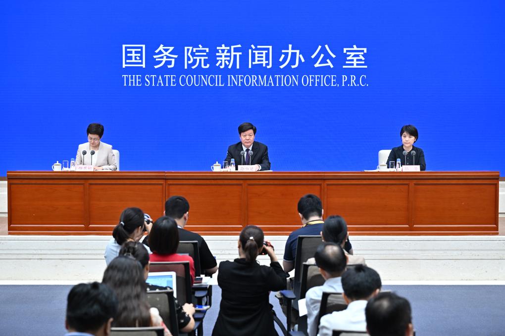Dieses am 11. Juli 2024 aufgenommene Foto zeigt die Konferenz zur Veröffentlichung des Weißbuchs mit dem Titel "Mariner Öko- und Umweltschutz in China" in Chinas Hauptstadt Beijing. Das Informationsbüro des chinesischen Staatsrats hat am Donnerstag ein Weißbuch mit dem Titel "Mariner Öko- und Umweltschutz in China" veröffentlicht.