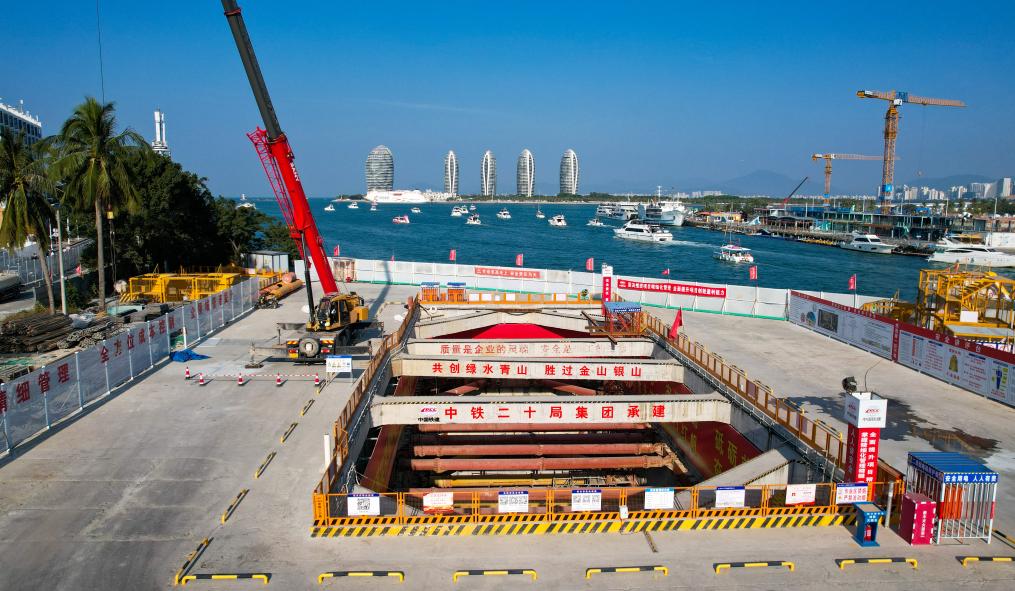 SANYA, 11. Januar 2025 (Xinhuanet) -- Ein Arbeiter arbeitet auf der Baustelle des Flussmündung-Durchgangsprojektes von Sanya in Sanya in der südchinesischen Provinz Hainan, 11. Januar 2025. Das von der China Railway 20th Bureau Group durchgeführte Projekt ist der erste Unterwassertunnel in Sanya und macht stetige Fortschritte. Nach seiner Fertigstellung wird es das räumliche Layout der Stadt Sanya weiter optimieren. (Quelle: Xinhua/Yang Guanyu)