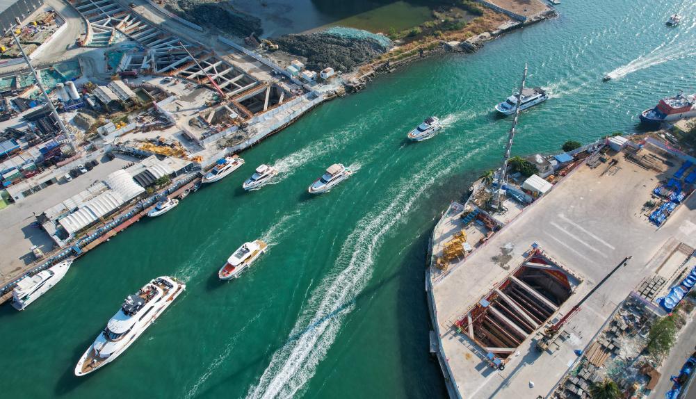 SANYA, 11. Januar 2025 (Xinhuanet) -- Eine Drohnenluftaufnahme zeigt die Baustelle des Flussmündung-Durchgangsprojektes von Sanya in Sanya in der südchinesischen Provinz Hainan, 11. Januar 2025. (Quelle: Xinhua/Yang Guanyu)