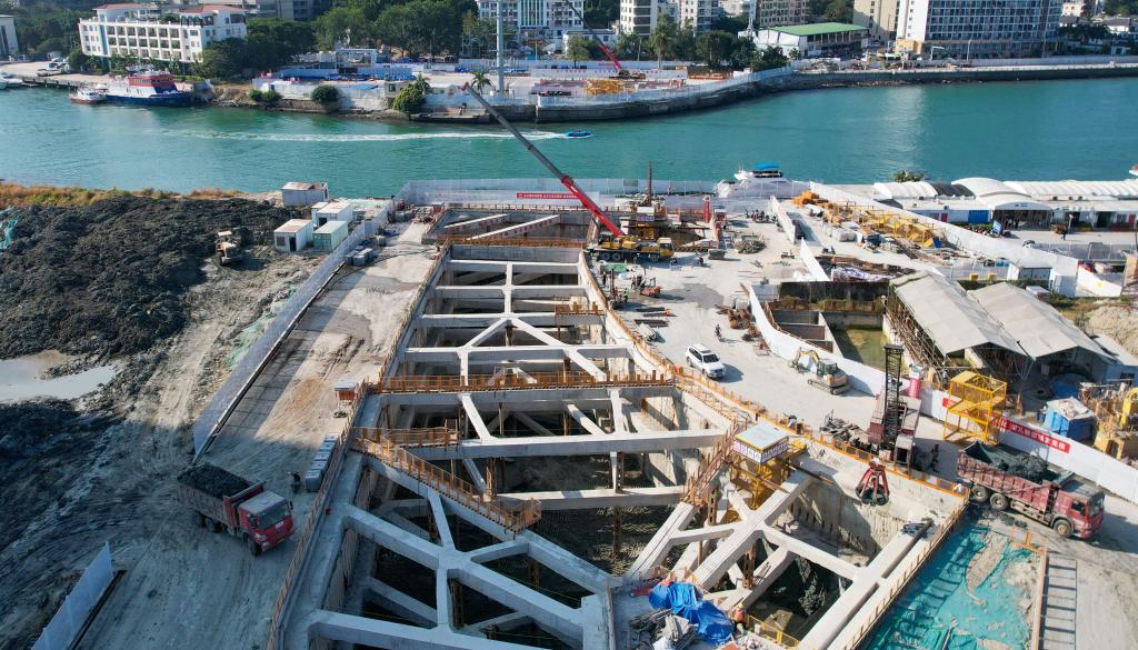 SANYA, 11. Januar 2025 (Xinhuanet) -- Arbeiter arbeiten auf der Baustelle des Flussmündung-Durchgangsprojektes von Sanya in Sanya in der südchinesischen Provinz Hainan, 11. Januar 2025. (Quelle: Xinhua/Yang Guanyu)