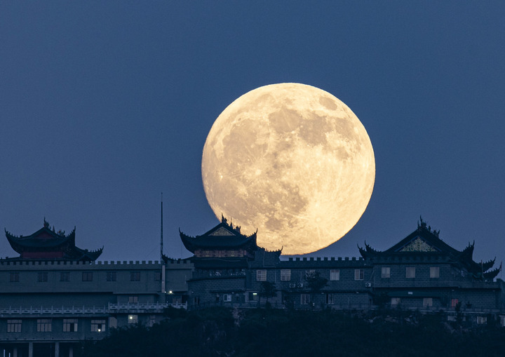 BEIJING, 7. Oktober 2025 (Xinhua) -- Das Foto zeigt den Vollmond im Kreis Cangnan in Wenzhou in der Provinz Zhejiang in Ostchina, 6. Oktober 2025. Am Montag wurde das diesjährige Mondfest gefeiert, das jedes Jahr am 15. Tag des achten Monats des chinesischen Mondkalenders begangen wird. Menschen in ganz China bewundern den Vollmond, um den traditionellen Feiertag zu feiern. (Foto von Su Qiaojiang/Xinhua)