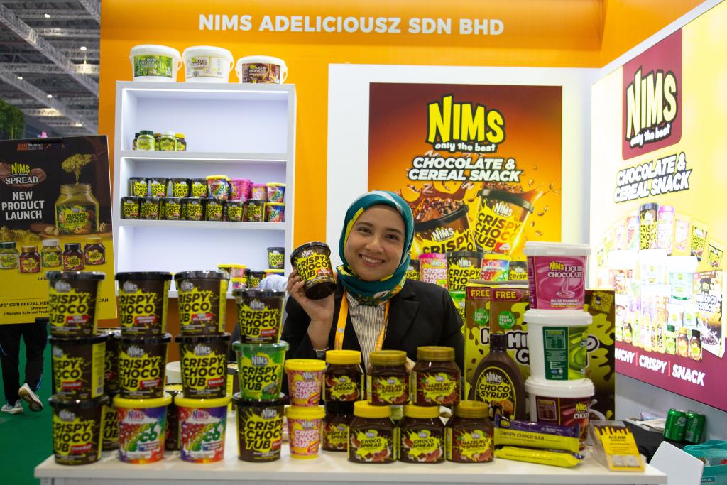 SHANGHAI, 7. November 2025 (Xinhuanet) -- Eine Mitarbeiterin aus Malaysia zeigt ein Schokoladenprodukt im Ausstellungsbereich für Lebensmittel und Agrarprodukte während der achten Internationalen Importmesse Chinas (CIIE) im ostchinesischen Shanghai, 7. November 2025. (Quelle: Xinhua/Tian Weiwei)