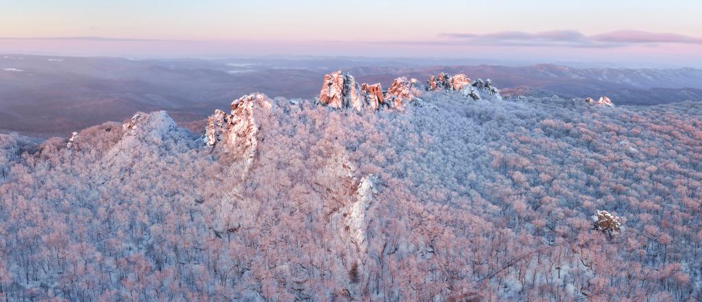 SHUANGYASHAN, 25. Januar 2026 (Xinhuanet) -- Das am 25. Januar 2026 aufgenommene Luftbild einer Drohne zeigt die Raureiflandschaft des Qixingshan-Waldparks in Shuangyashan in der nordostchinesischen Provinz Heilongjiang. (Foto von Han Yang/Xinhua)