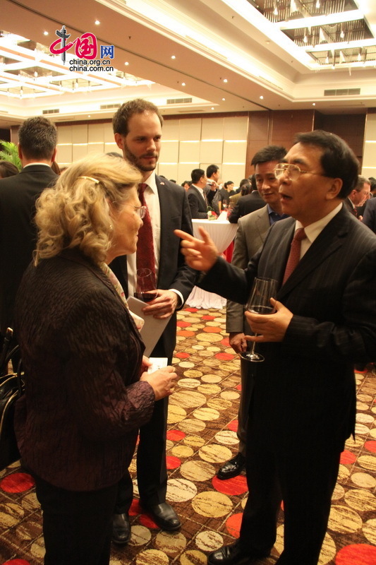 Von rechts nach links: Bai Chunli, der Präsident der chinesischen Akademie der Wissenschaften im Gespräch mit Helmut Spitzl und Botschafterin Giner-Reichl.
