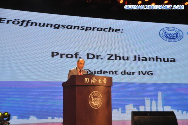Der Präsident der IVG und der Germanist Prof. Dr. Zhu Jianhua an der Tongji-Universität richtet sich eine Eröffnungsrede.