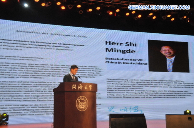 Der Botschafter der VR China in Deutschland Shi Mingde richtet sich an dem Kongress eine Glückwunschansprache.