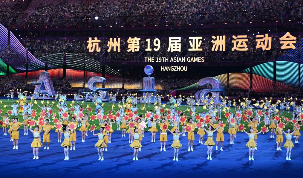 HANGZHOU, 8. Oktober 2023 (Xinhuanet) -- Schauspieler und Schauspielerinnen treten während der Abschlusszeremonie der 19. Asienspiele im Hangzhou Olympic Sports Center Stadium in Hangzhou in der ostchinesischen Provinz Zhejiang auf, 8. Oktober 2023. (Quelle: Xinhua/Huang Zongzhi)
