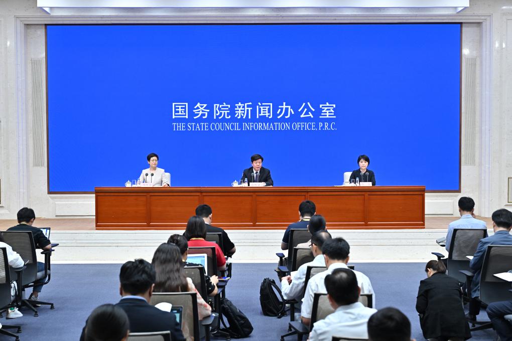 Dieses am 11. Juli 2024 aufgenommene Foto zeigt die Konferenz zur Veröffentlichung des Weißbuchs mit dem Titel "Mariner Öko- und Umweltschutz in China" in Chinas Hauptstadt Beijing. Das Informationsbüro des chinesischen Staatsrats hat am Donnerstag ein Weißbuch mit dem Titel "Mariner Öko- und Umweltschutz in China" veröffentlicht.