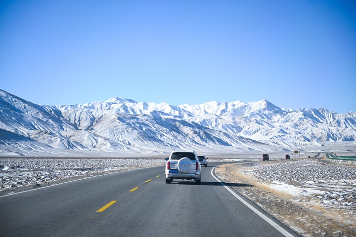 Das Foto zeigt Fahrzeuge auf der Qinghai-Xizang-Schnellstraße in China, 27. November 2024. (Xinhua/Zhang Long)