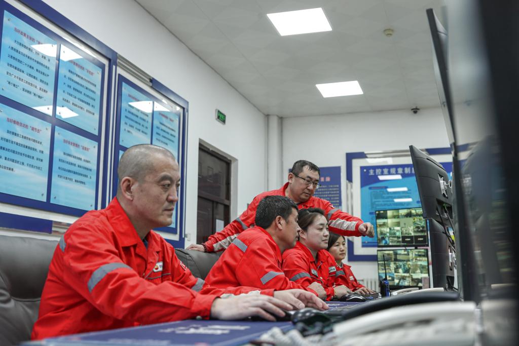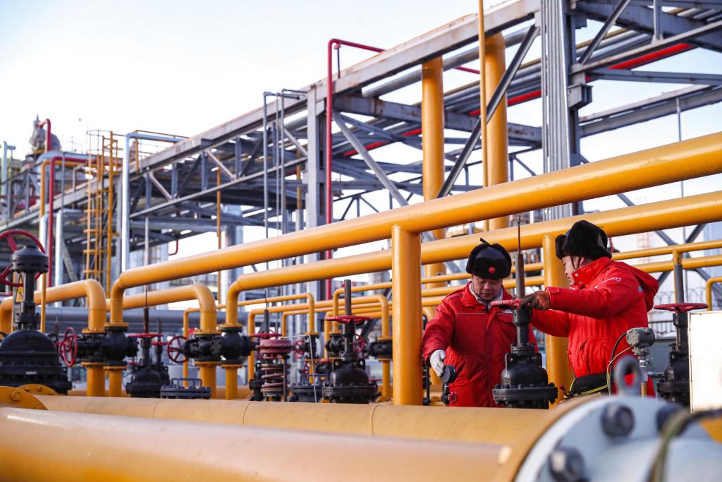 DAQING, 4. Januar 2025 (Xinhuanet) -- Arbeiter überprüfen in einem Erdgasunternehmen des Daqing-Ölfelds in der nordostchinesischen Provinz Heilongjiang die Pipelines, 3. Januar 2025. Das Daqing-Ölfeld, eine der größten Ölproduktionsstätten Chinas, gab am Freitag bekannt, dass seine Erdgasproduktion im Jahr 2024 mehr als 6 Milliarden Kubikmeter betrug. Damit wird seit 14. aufeinanderfolgenden Jahren stetiges Wachstum verzeichnet. (Foto von Ma Ke/Xinhua)
