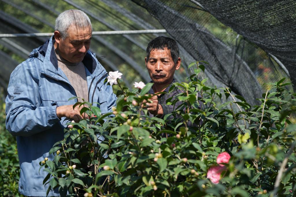 „Heute haben ausländische Kameliensorten große Anerkennung gefunden, aber China ist die wahre Heimat der Kamelie. Ich fühle mich verpflichtet, das Erbe weiterzugeben“, sagte Wang. (Quelle: Xinhua/Weng Xinyang)