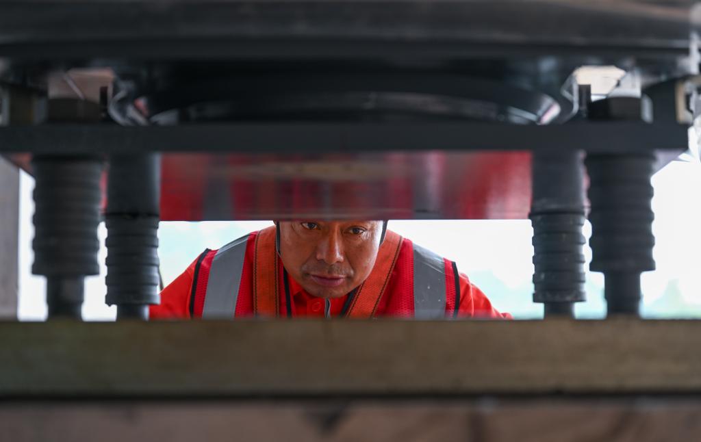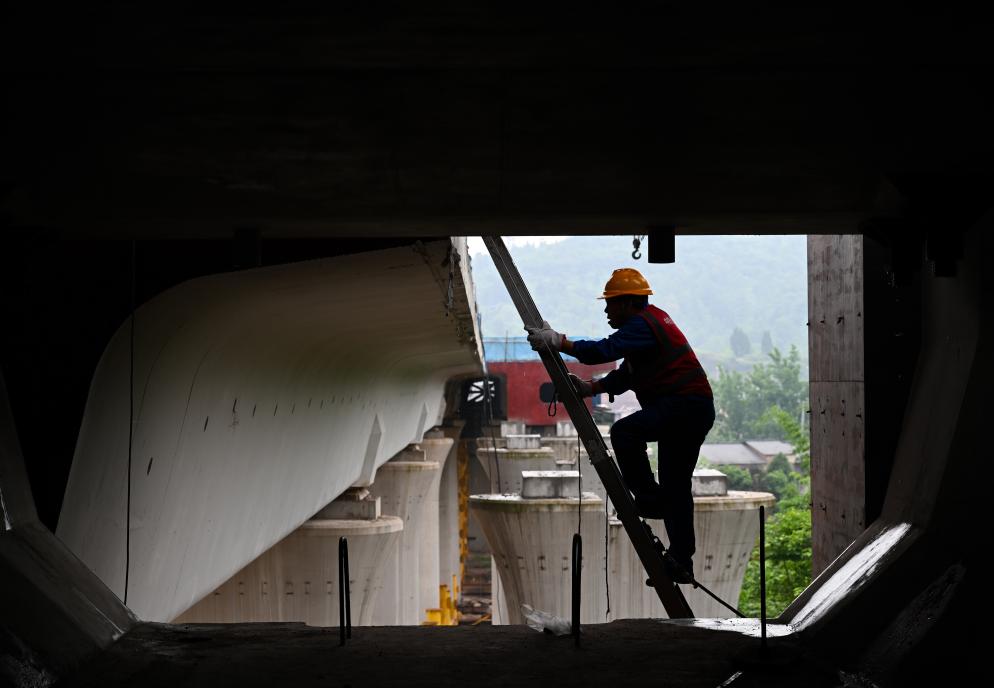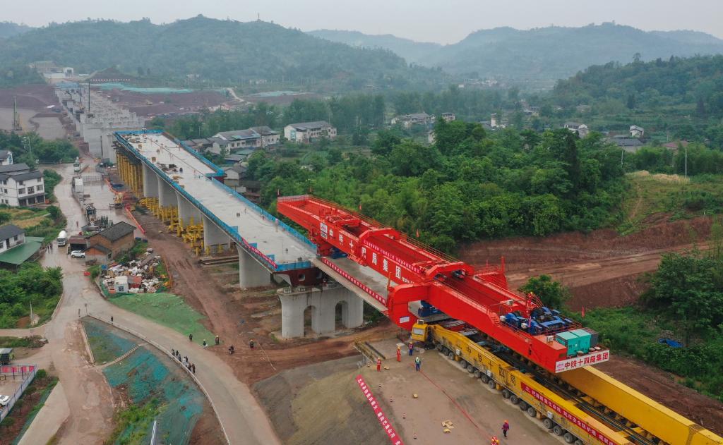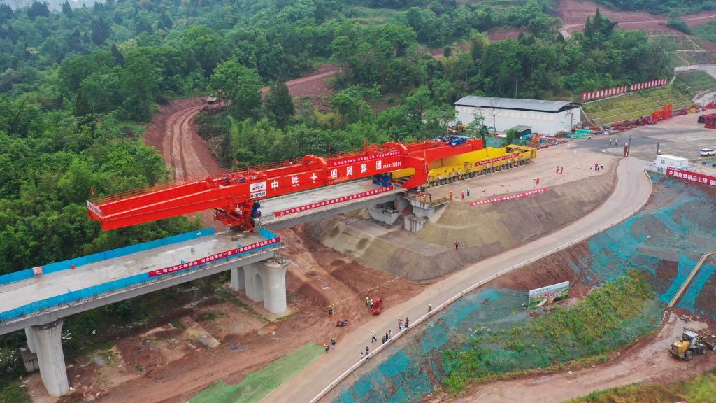 Nach ihrer Fertigstellung wird die 292 km lange Mittellinie der Eisenbahnlinie Chengdu-Chongqing Züge mit einer Höchstgeschwindigkeit von 350 km pro Stunde zulassen und die Fahrtzeit zwischen den beiden Städten auf nur 50 Minuten verkürzen. (Quelle: Xinhua/Chen Cheng)
