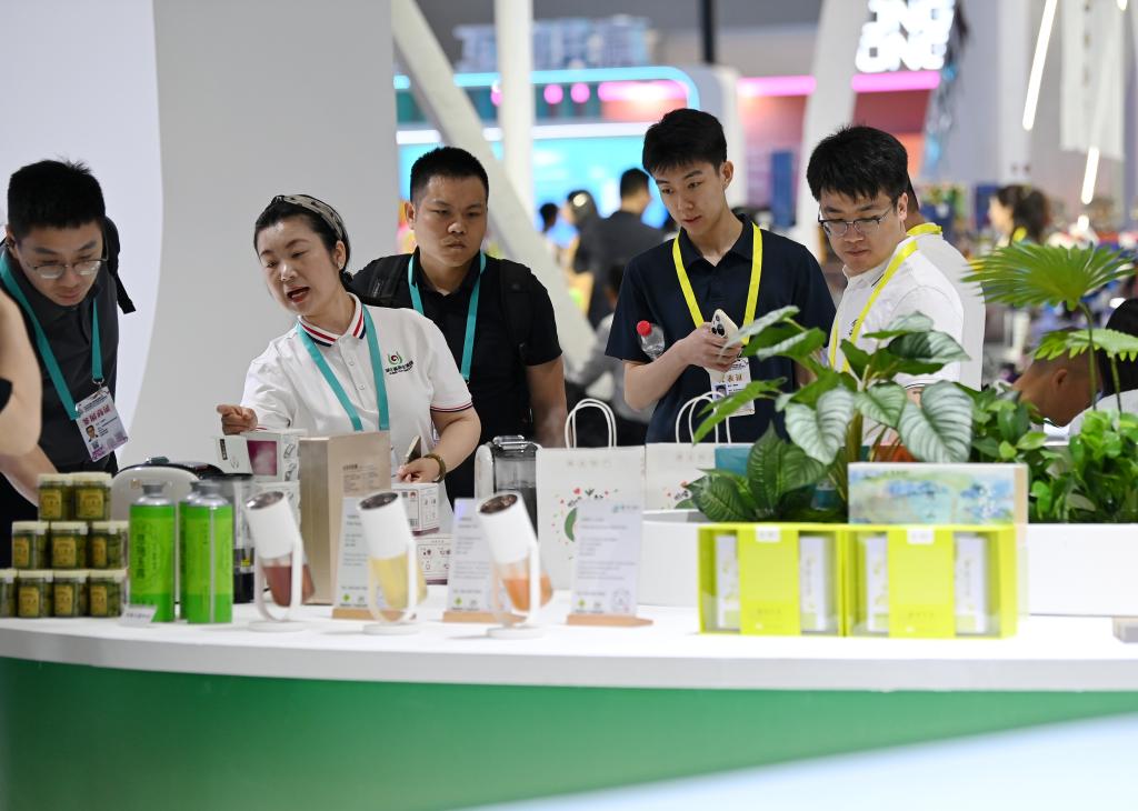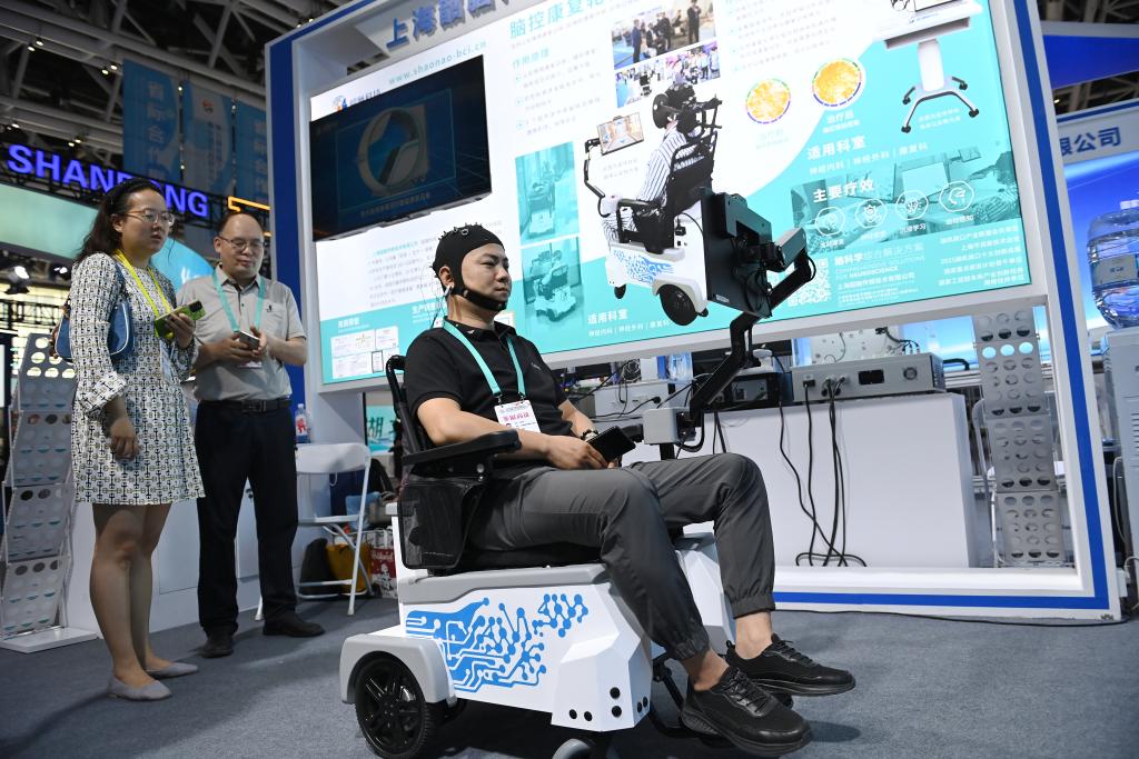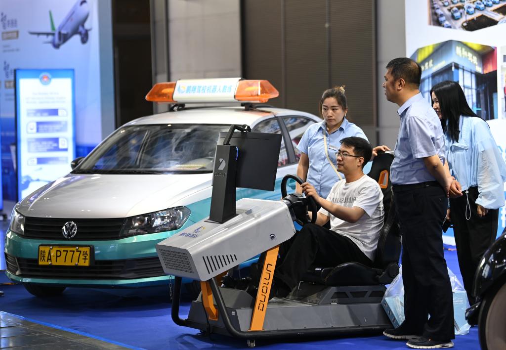 XI'AN, 21. Mai 2025 (Xinhuanet) -- Ein Mitarbeiter demonstriert die Verwendung eines Rehabilitationsrollstuhls während der 9. Internationalen Seidenstraßen-Ausstellung und des Investitions- und Handelsforums für die Zusammenarbeit zwischen Ost- und Westchina in Xi'an in der nordwestchinesischen Provinz Shaanxi, 21. Mai 2025. Die fünftägige Veranstaltung wurde am Mittwoch in Xi'an eröffnet. (Quelle: Xinhua/Li Yibo)