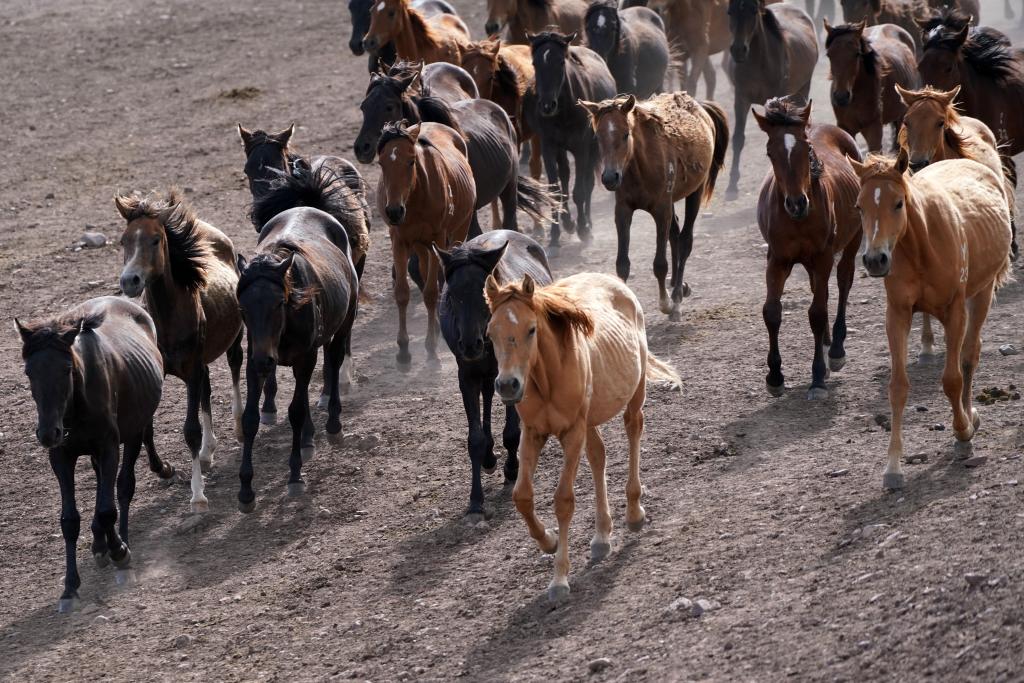 7月10日在山丹馬場拍攝的奔跑的馬群。新華社記者 馬寧 攝