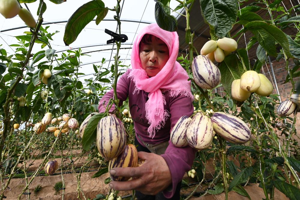 春節臨近,在甘肅省武威市古浪縣現代絲路寒旱農業示範基地的高標準日光溫室內,當地農民錯峰種植的人參果等農産品陸續成熟,大家忙着採摘、包裝、發貨,提前供應春節市場。