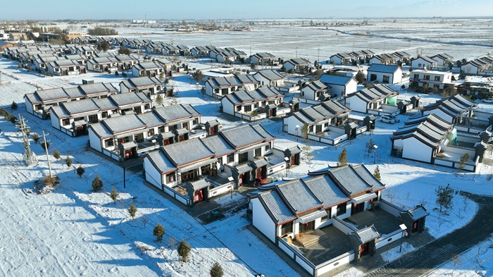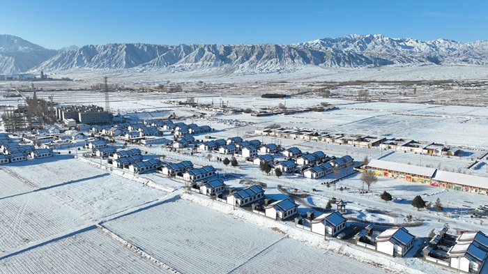 12月23日,雪後初霽,張掖市甘州區甘浚鎮西洞村盡顯詩意與生機。放眼望去,一排排新建的農家小院聯排而立,白墻灰瓦的雅致格調與澄澈藍天相映成趣,與不遠處的祁連雪山構成一幅絕美鄉村畫卷。