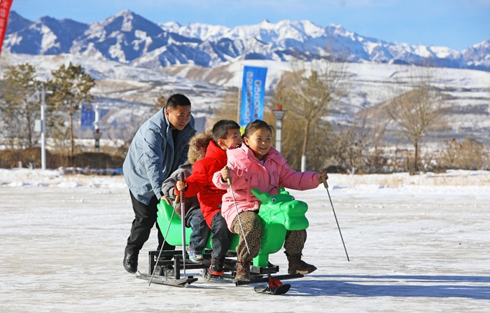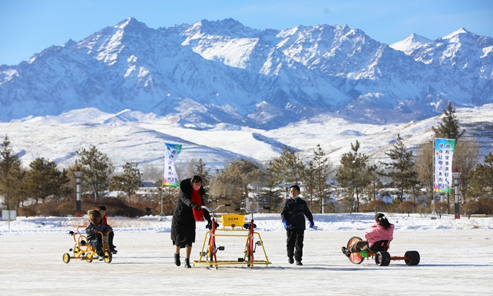 1月8日,甘肅省張掖市民樂縣第三屆“冰雪嘉年華”暨冬春季全域旅游推廣活動。游客們紛紛在冰雪樂園暢玩冰上自行車、充氣碰碰球、親子雪圈等冰雪娛樂項目,盡情感受冰雪運動帶來的快樂和趣味。